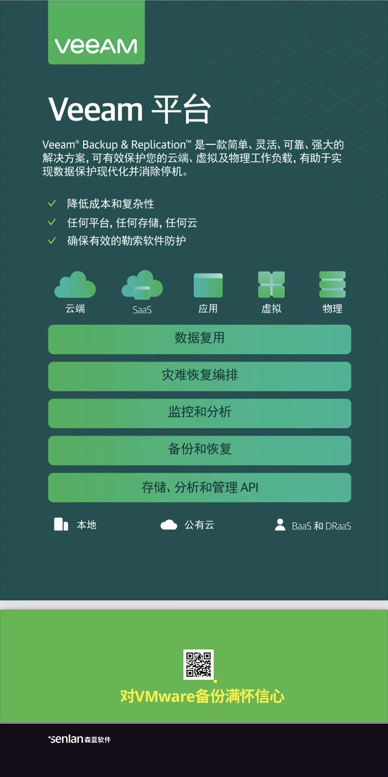 首屈一指的备份和恢复提供商Veeam平台软件和康末英服务™,为企业数据安全提供更强保护。无论你的数据在那里,Veeam Backup & Replication备份和恢复软件皆能如愿。