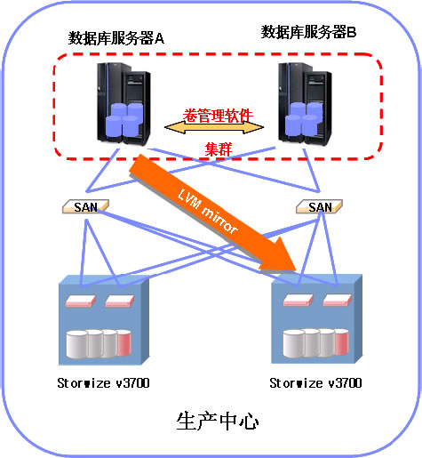 - HA数据库服务器+双存储的卷管理LVM Mirror方案,消除存储单点故障风险,存储故障不影响应用